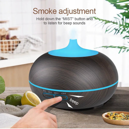 Elegant Wood Grain Aromatherapy Diffuser Night Light Humidifier for Home Office 400ml