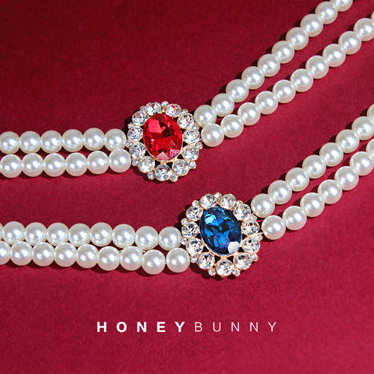 Luxurious Honeybunny Cat and Dog Collar with Gemstone Necklace, Pearl and Water Diamond, Vintage Pet Jewelry, Exquisite Decoration Accessory
