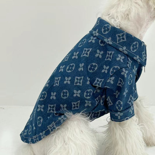 Chic Pet Clothing: Oversized Denim Shirt for Stylish Small Dogs - Trendy Teddy, Pomeranian, and more!