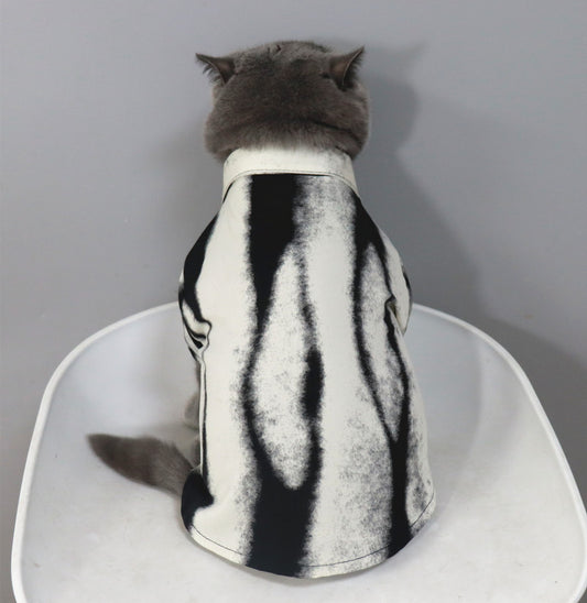 Fashionable Cat Clothes for Summer - Lightweight Cat Shirt to Prevent Shedding, Stylish Ink-Splashed Holiday Style