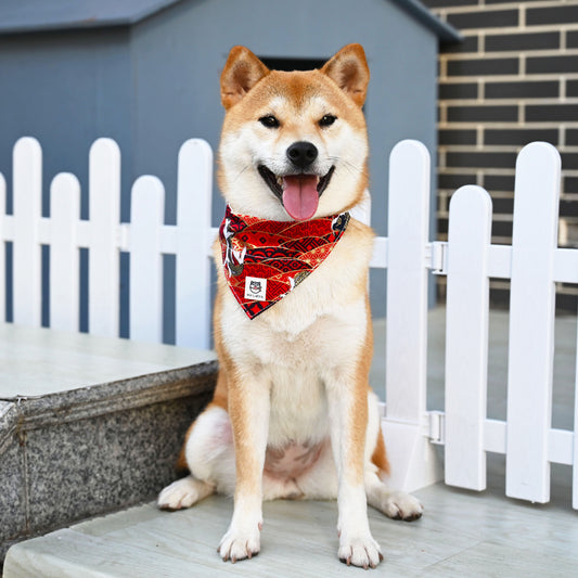Japanese Style Dog Bandana Collar Set in Shibainu Grass Pattern - Pack of 2 - Unique Pet Accessory