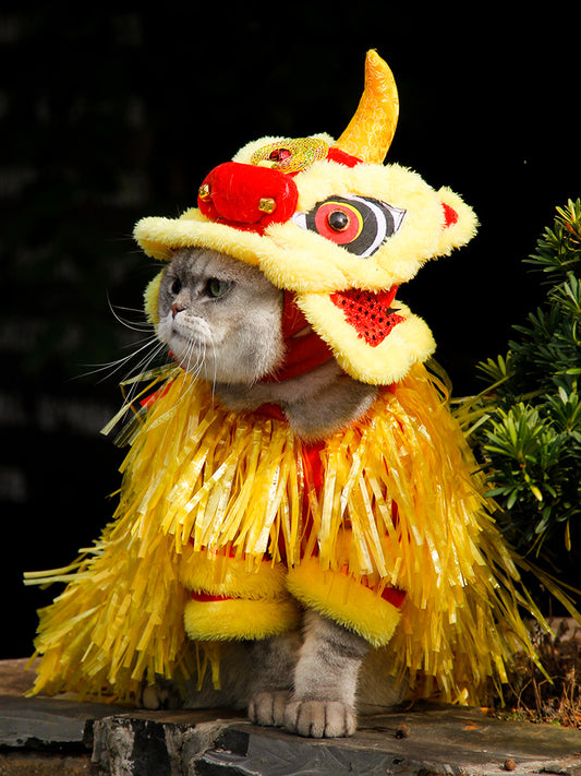 Festive Lion Dance Pet Costume for Chinese New Year Dog Cat Clothing China Style Lion Dance Outfit