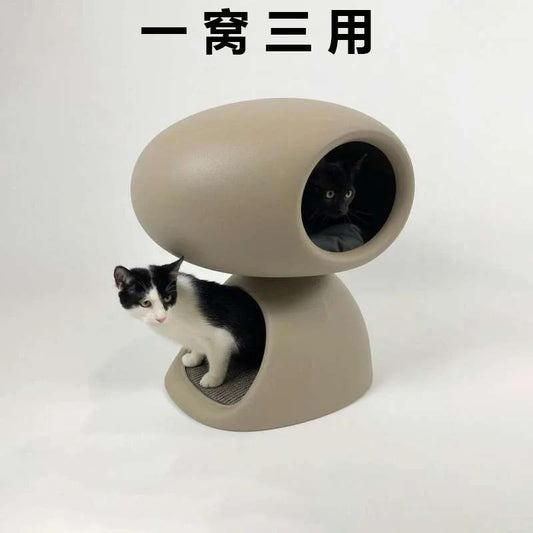 Luxury Design Double-layer Cat House, All-season Cat Bed with Warmth, Integrated Scratching Board, Closed Safety House