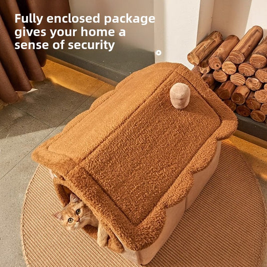Versatile Four-Season Cat Cave House - Detachable Washable Pet Igloo for Winter Comfort